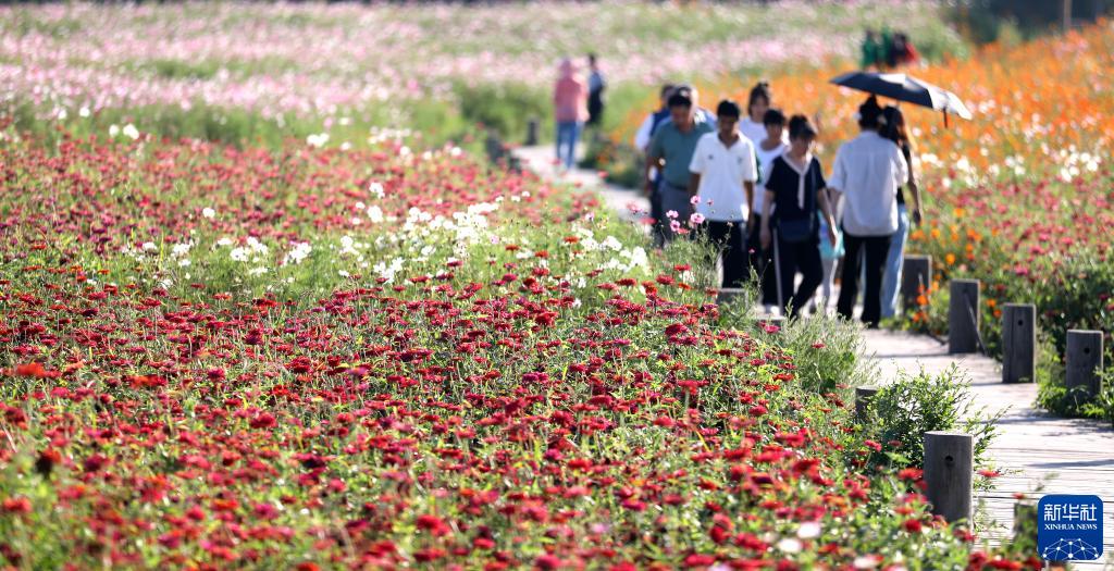 初秋時節,位于遼寧省臺安縣的遼河文化旅游景區千畝“花海”進入盛花期。經過多年綜合治理,昔日的黃沙飛揚之地如今已成花海景觀,吸引游客前來賞花打卡。