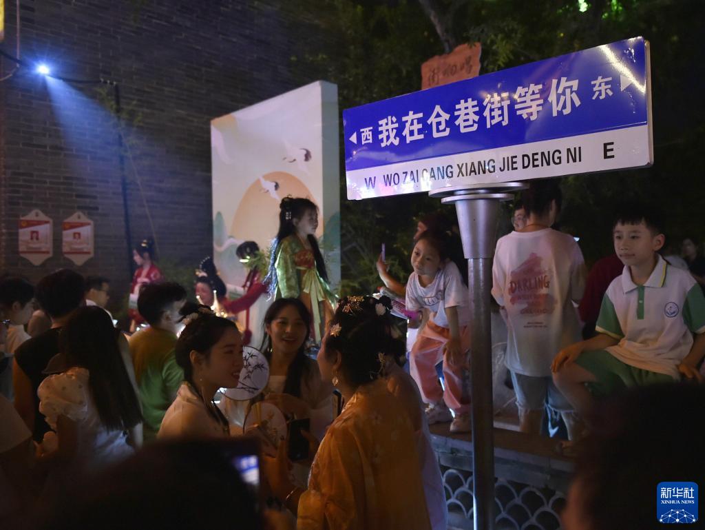 9月7日晚在安陽古城倉巷街拍攝的“古韻鎏光·燈火安陽”沉浸式夜游活動現場。