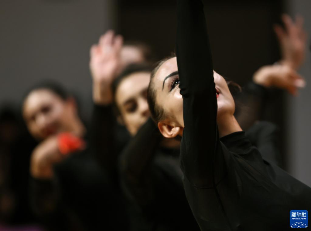 新疆塔縣文工團舞蹈演員在排練《花兒為什么這樣紅》(9月4日攝)。新華社記者 蘭紅光 攝