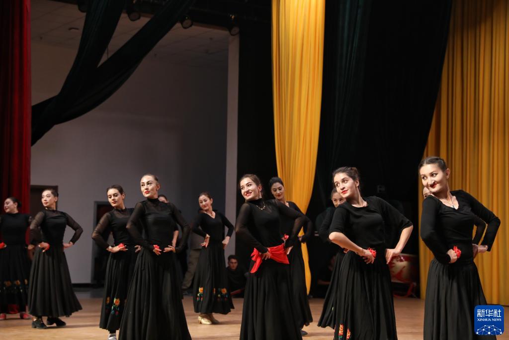 新疆塔縣文工團舞蹈演員在排練節(jié)目《花兒為什么這樣紅》(9月4日攝)。新華社記者 程婷婷 攝