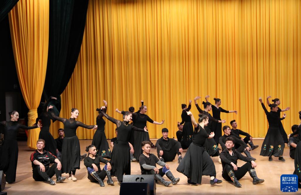 新疆塔縣文工團舞蹈演員在排練鷹舞節(jié)目《傳承》(9月4日攝)。新華社記者 程婷婷 攝