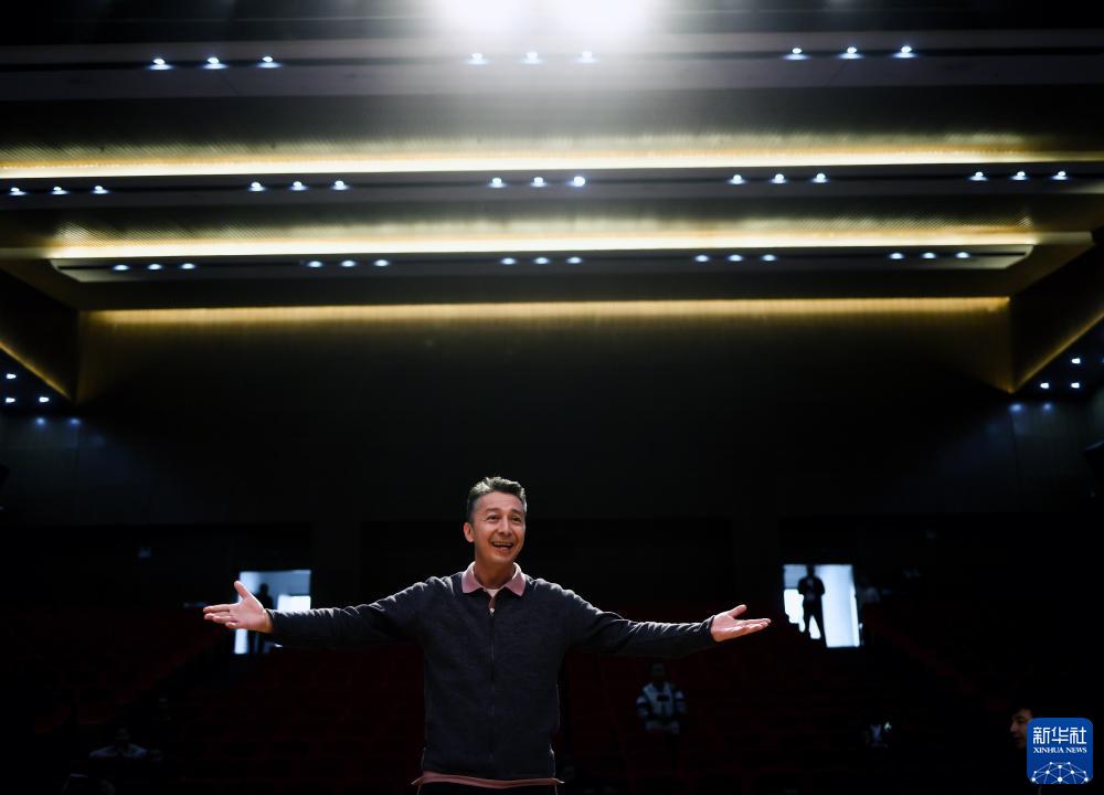 新疆藝術劇院歌舞團再比江·阿地力導演在塔縣文化服務中心劇場指揮演員排練(9月4日攝)。新華社記者 蘭紅光 攝