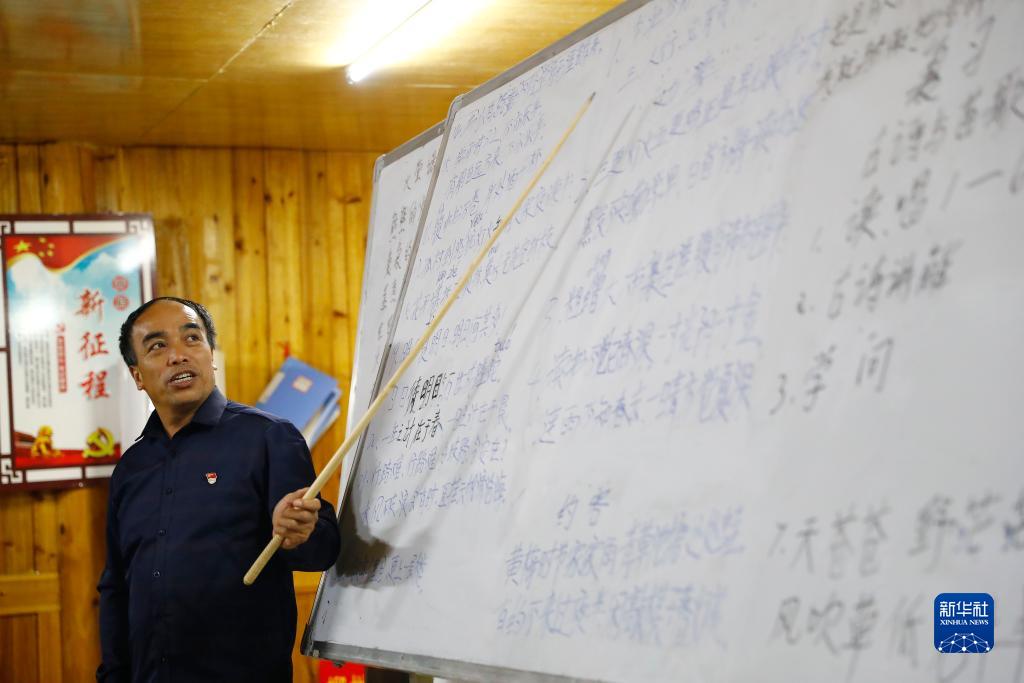 在烏英苗寨婦女夜校,潘先鋒在給婦女們上課(2023年8月30日攝)。