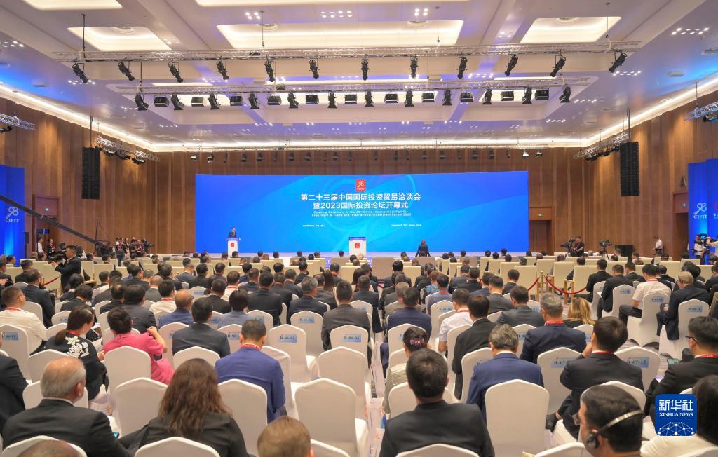 9月8日拍攝的第二十三屆中國國際投資貿易洽談會暨2023國際投資論壇開幕式現場。