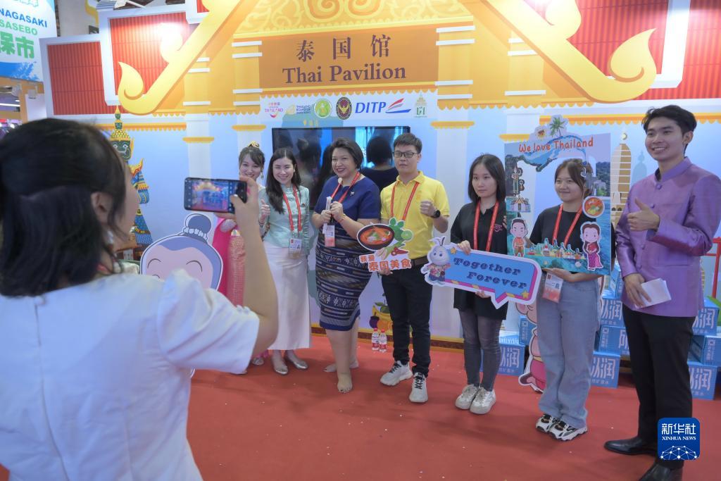 9月8日,中外嘉賓在泰國展區(qū)前合影。
