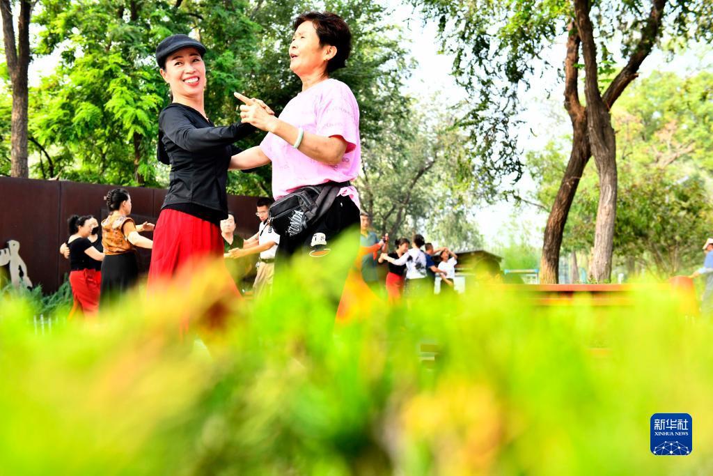 9月7日,市民在德州市錦繡川綠地公園跳舞。