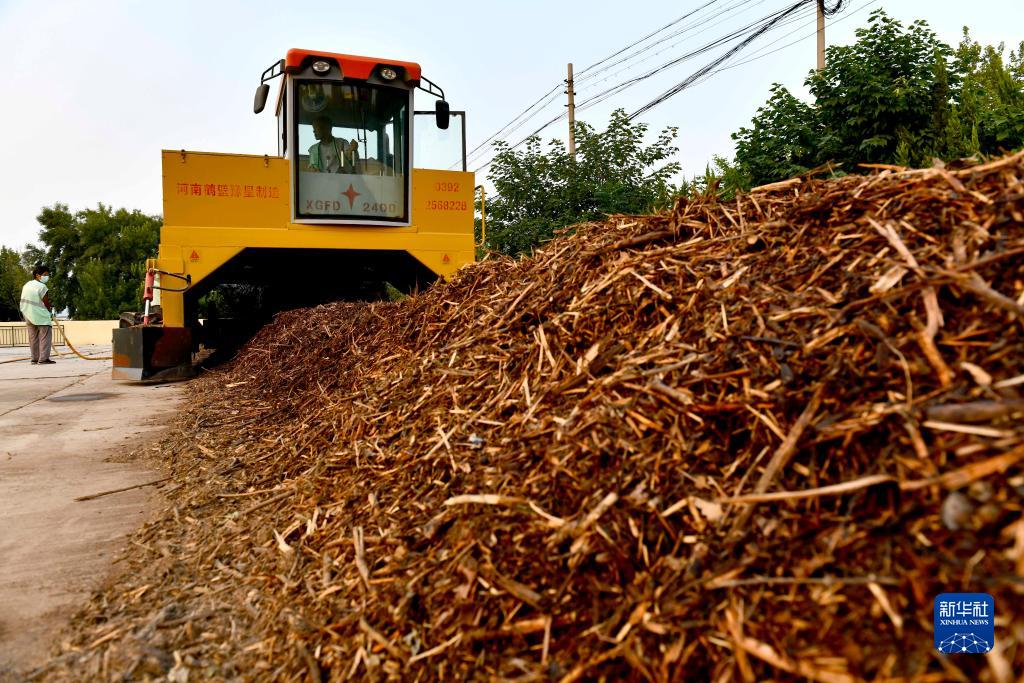 9月7日,在德州市碳循環創新示范基地,工作人員對園林綠化垃圾進行資源化處理。