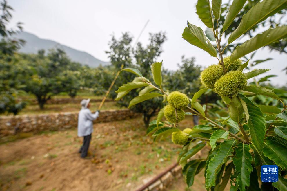 9月8日,在寬城縣碾子峪鎮(zhèn)艾峪口村,農(nóng)民在收獲板栗。