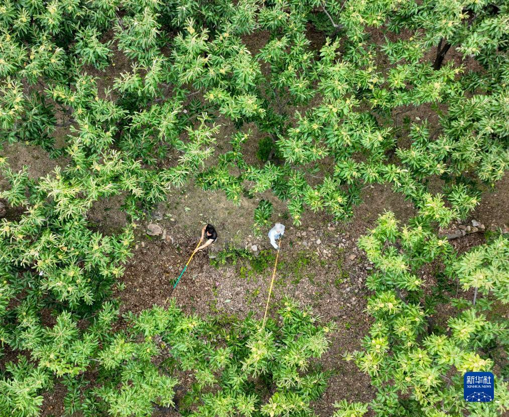 9月8日,在寬城縣碾子峪鎮艾峪口村,農民在收獲板栗(無人機照片)。