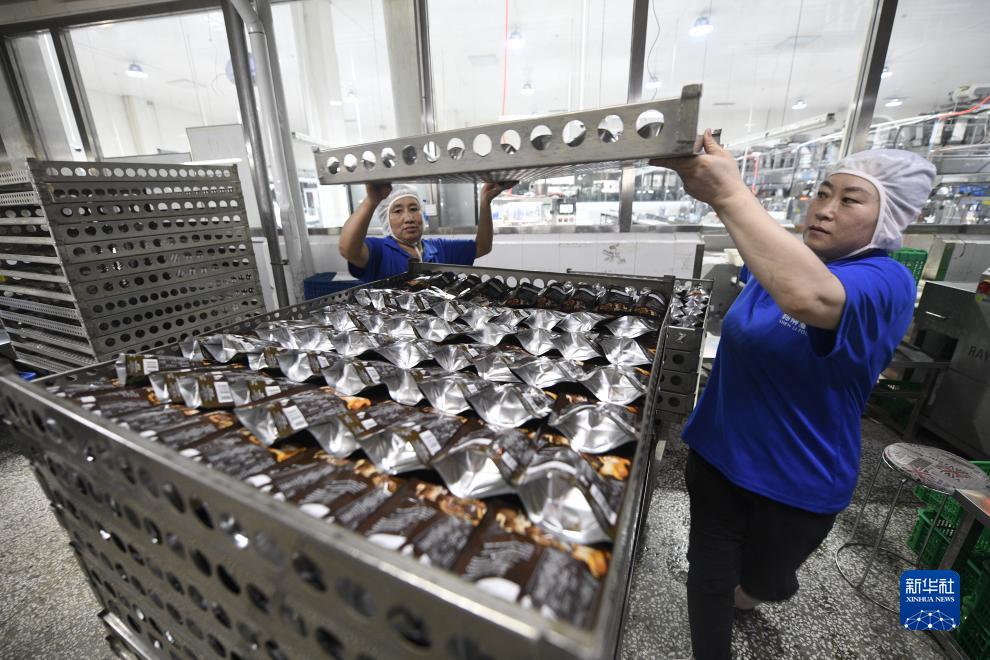 9月8日,在寬城縣一家板栗深加工企業,工人將板栗產品裝盤準備進行消毒。