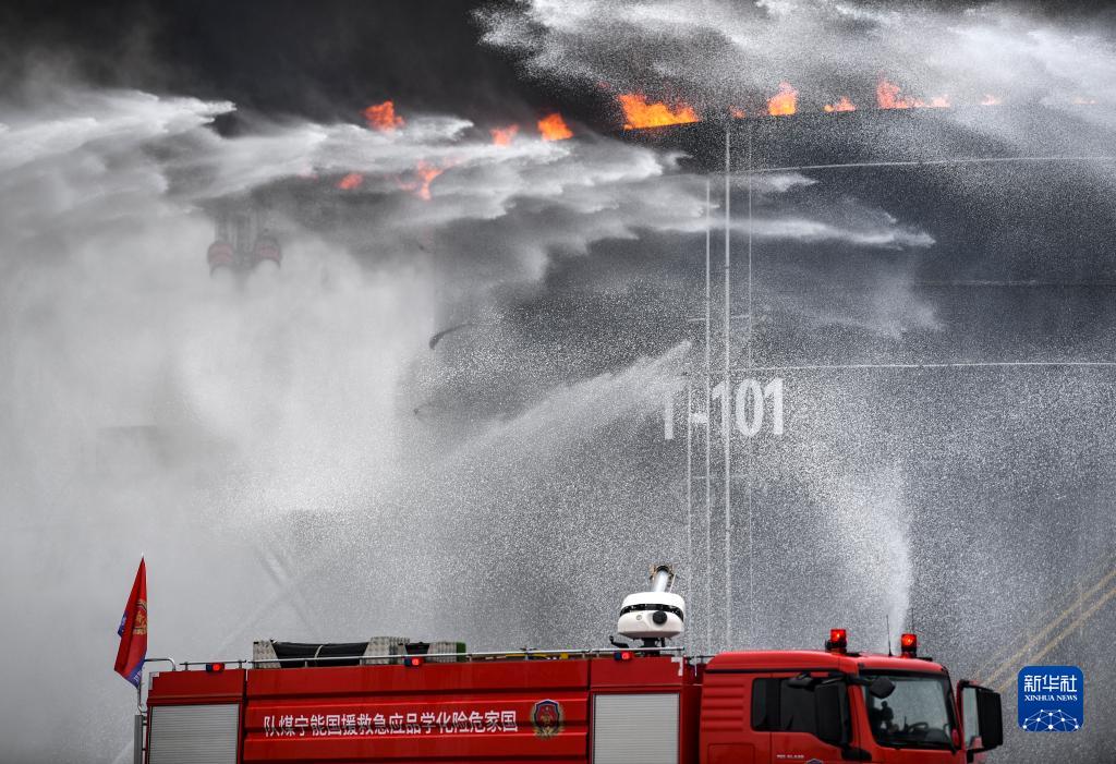 這是9月8日拍攝的實戰滅火演練現場。