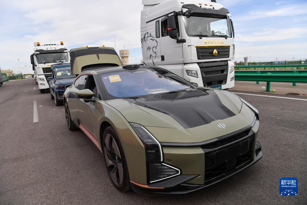 這是在霍爾果斯公路口岸等待出口的國產新能源汽車(9月6日攝)。