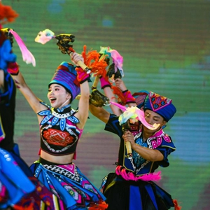9月8日,表演團隊在演出廣場舞《銅鈴舞起來》。