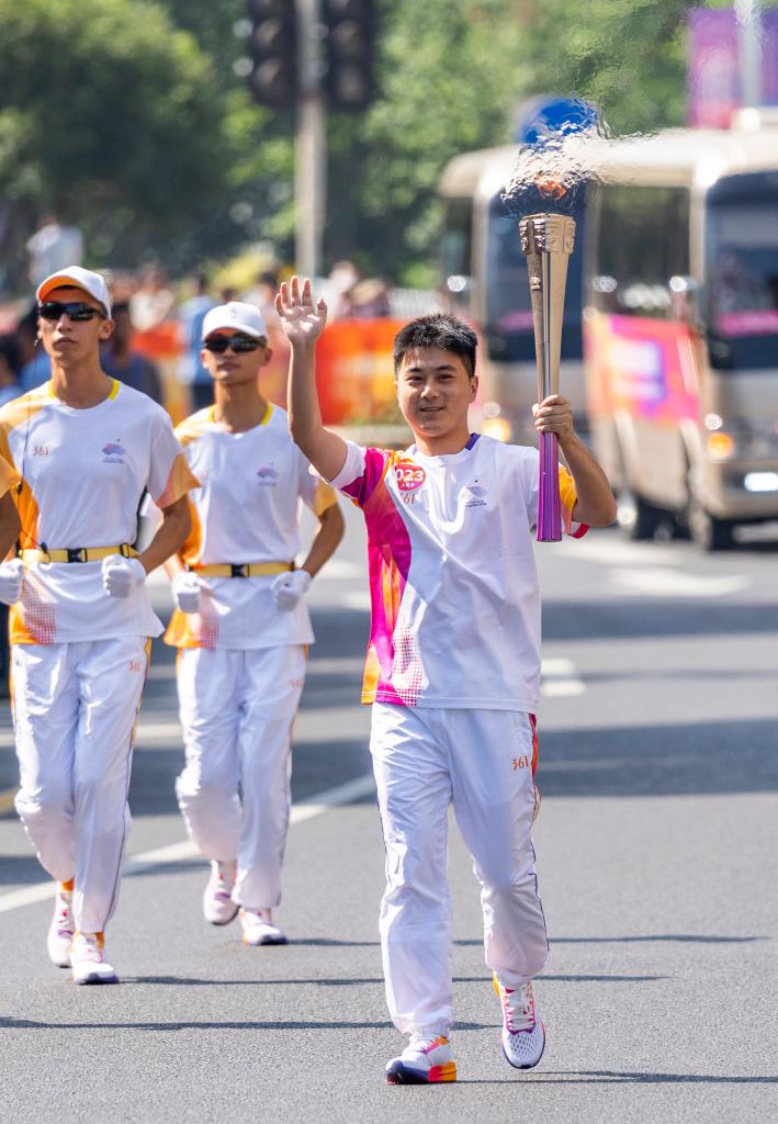 當日,杭州亞運會火炬在湖州傳遞。