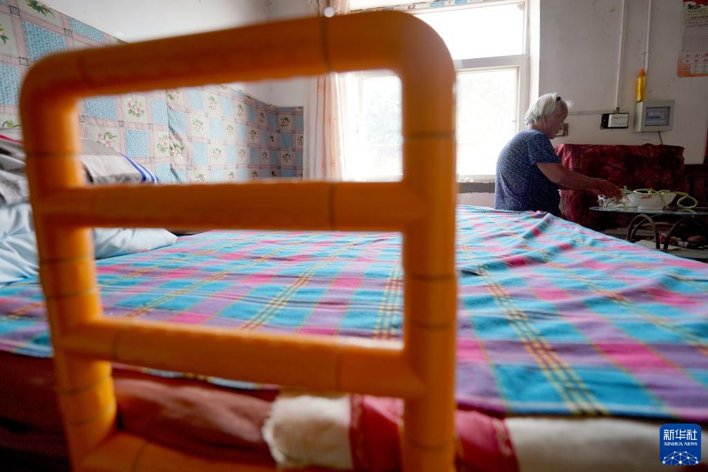 河北省巨鹿縣后辛莊村85歲的徐遂的床上安裝了便于上下床的扶手(9月8日攝)。