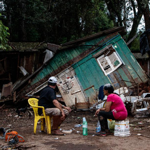9月8日,在巴西南里奧格蘭德州埃斯特雷拉,一名男子清理家中的淤泥。