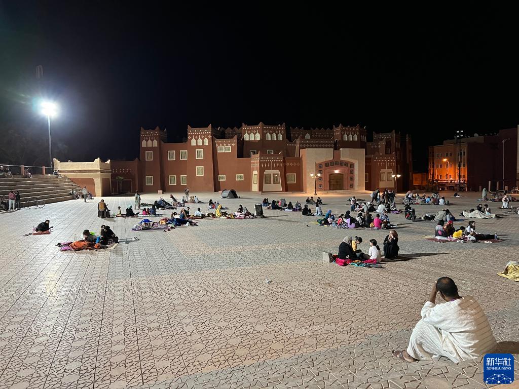 9月9日凌晨,在距離震中200多公里的摩洛哥瓦爾扎扎特市,居民在市區的空地避險(手機照片)。