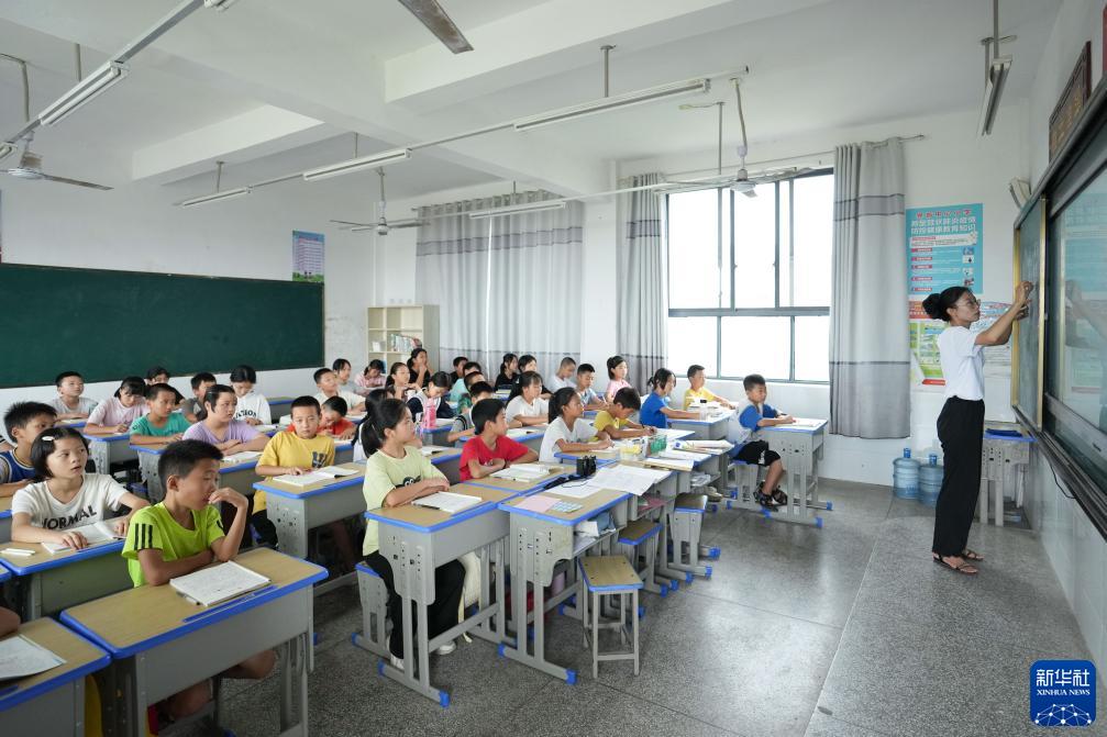 9月7日,陳艷輝在湖南省株洲市茶陵縣界首中心小學給學生上語文課。新華社記者 薛宇舸 攝