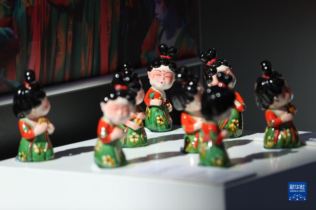 這是9月8日在比利時布魯塞爾漫畫節中國館展區拍攝的唐三彩玩偶。