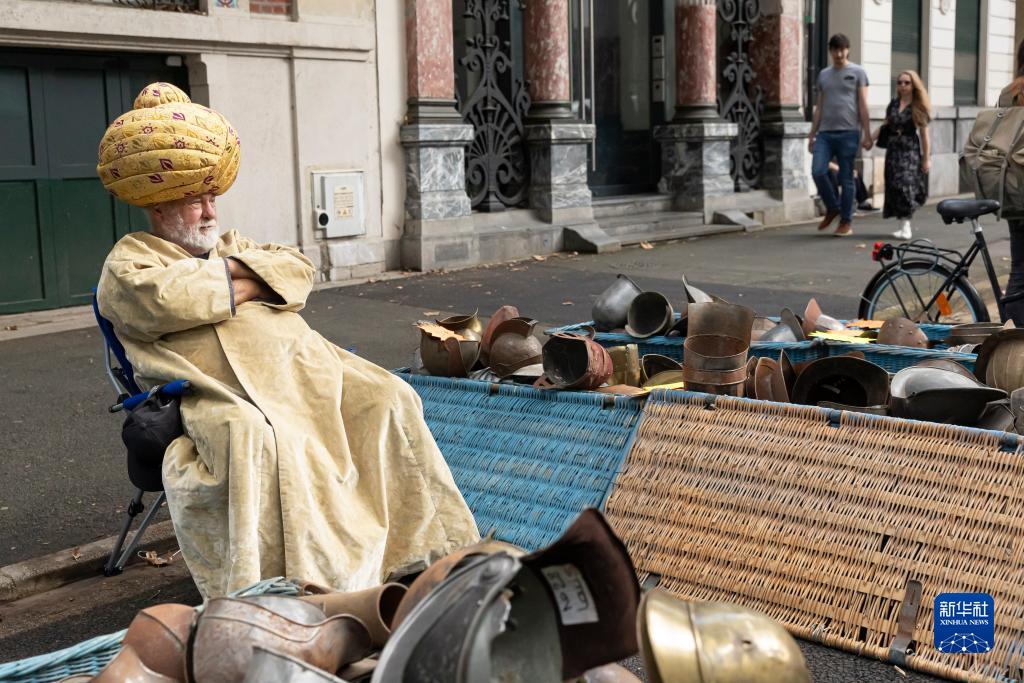 9月2日,在法國北部城市里爾的舊貨市場,一名攤主等待顧客。