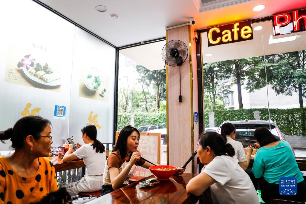9月8日,市民在廣西南寧一家越南粉店用餐。
