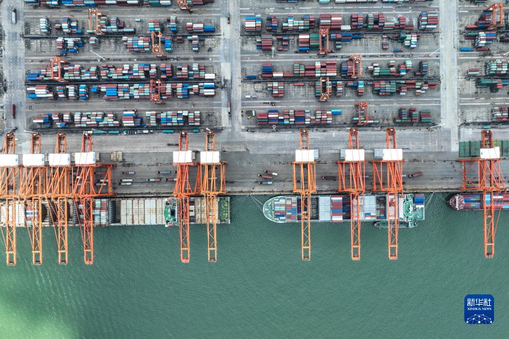 這是2023年7月22日拍攝的北部灣港欽州自動化集裝箱碼頭(無人機照片)。