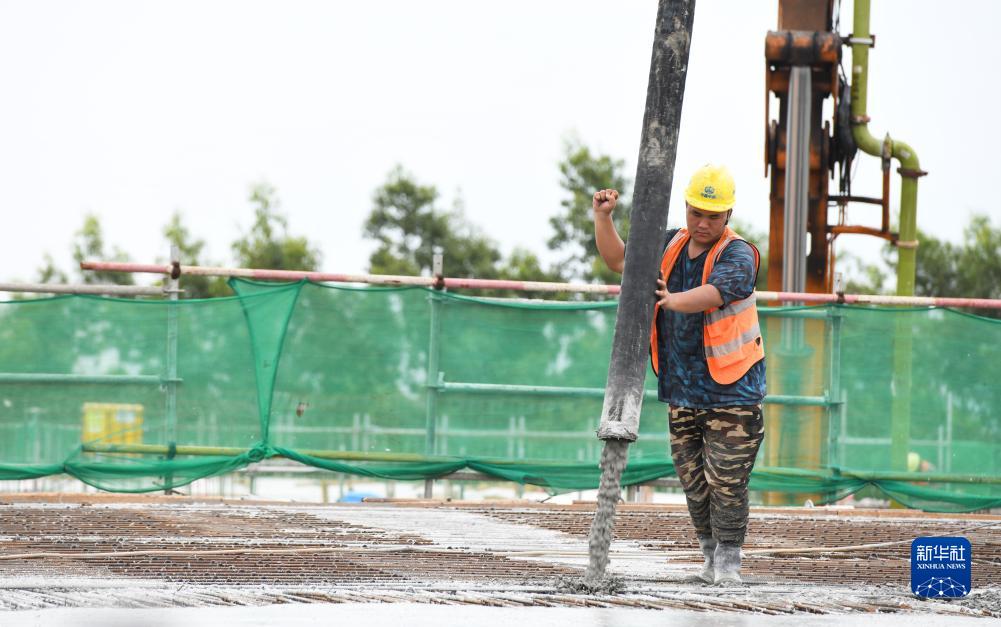 9月9日,工人在海口新海港和南港“二線口岸”(貨運)集中查驗場所建設項目上施工作業。