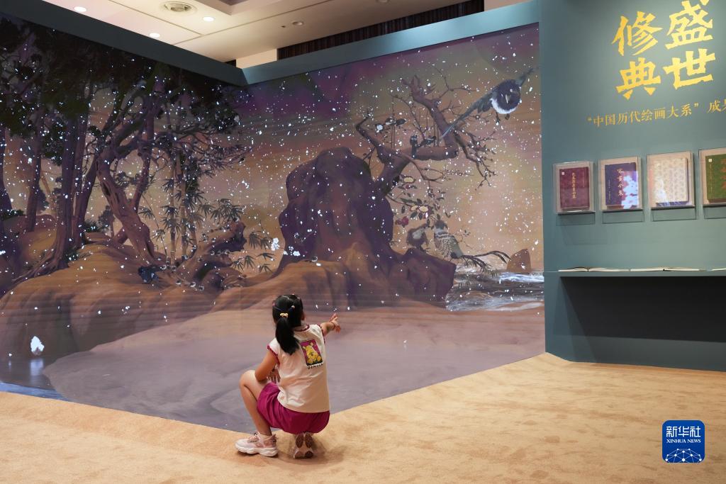 9月9日,小朋友在大道之行——“八八戰略”實施20周年大型主題展覽上觀看“盛世修典”項目的視頻介紹。