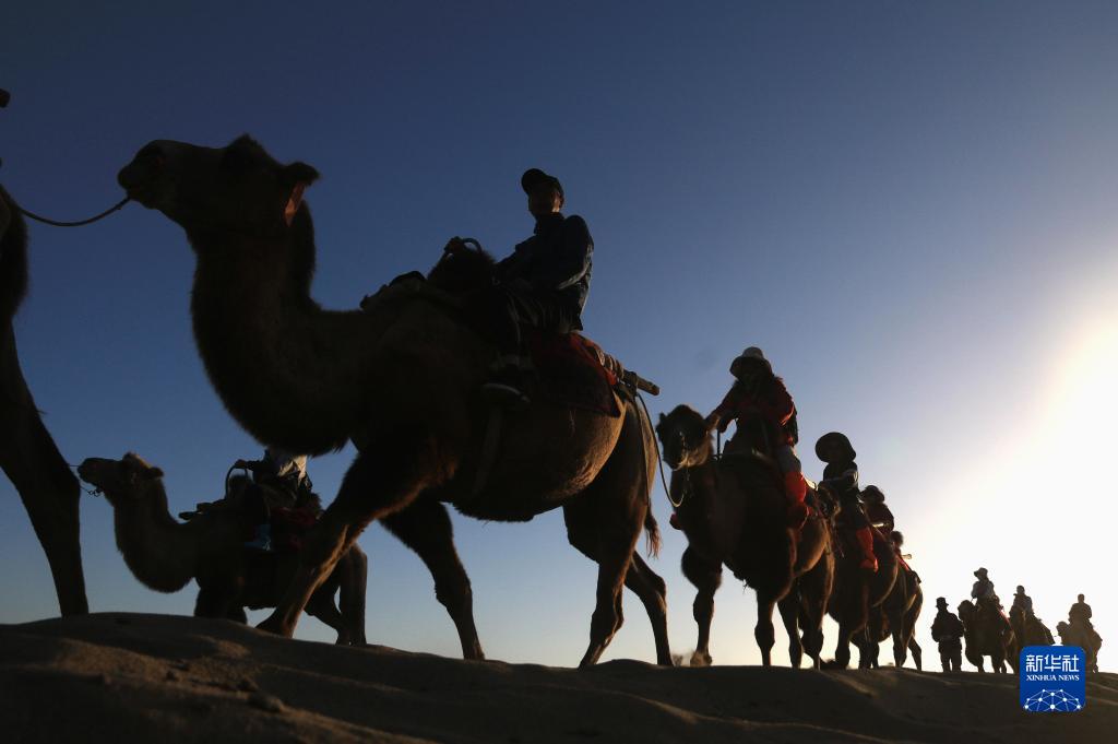 9月9日,游客在甘肅省敦煌市鳴沙山月牙泉景區(qū)游覽。