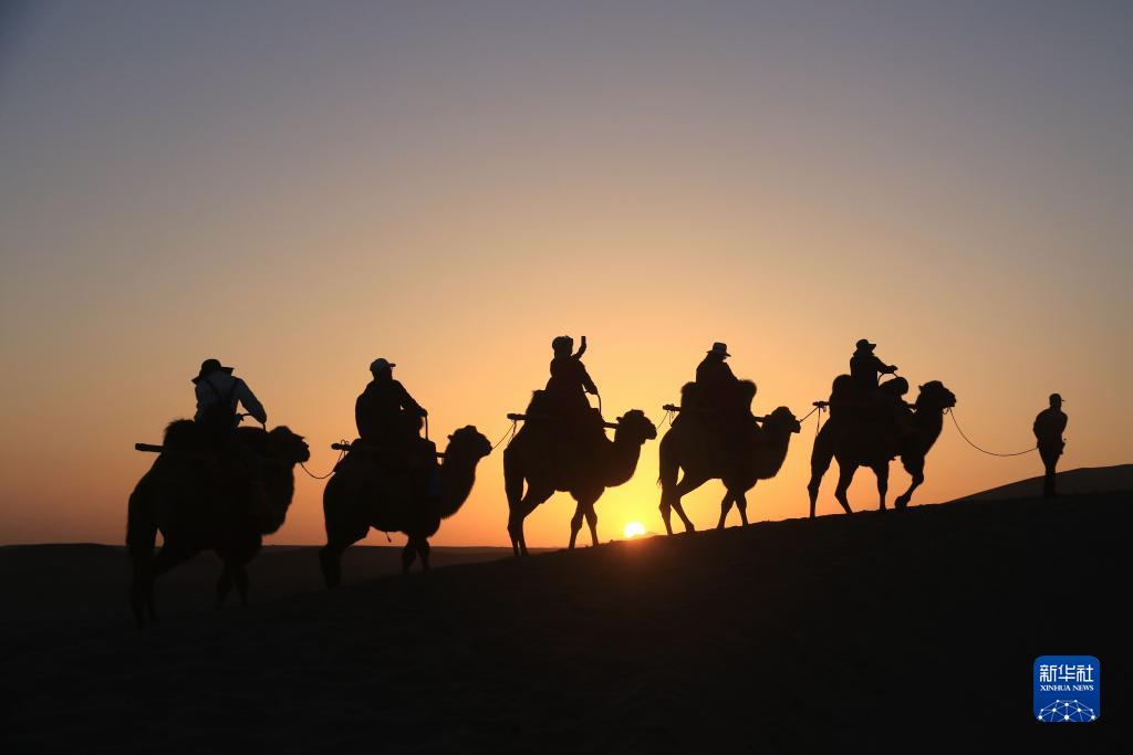 9月9日,游客在甘肅省敦煌市鳴沙山月牙泉景區游覽。