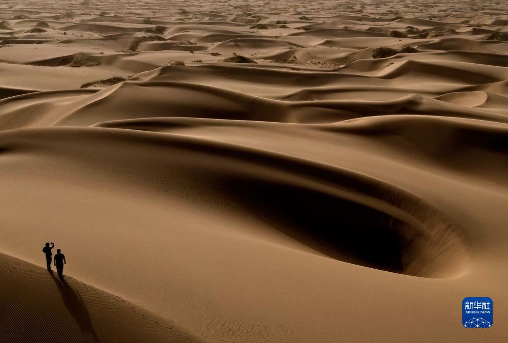 這是9月7日在新疆喀什地區(qū)麥蓋提縣N39°沙漠旅游景區(qū)拍攝的沙漠風(fēng)光(無人機照片)。