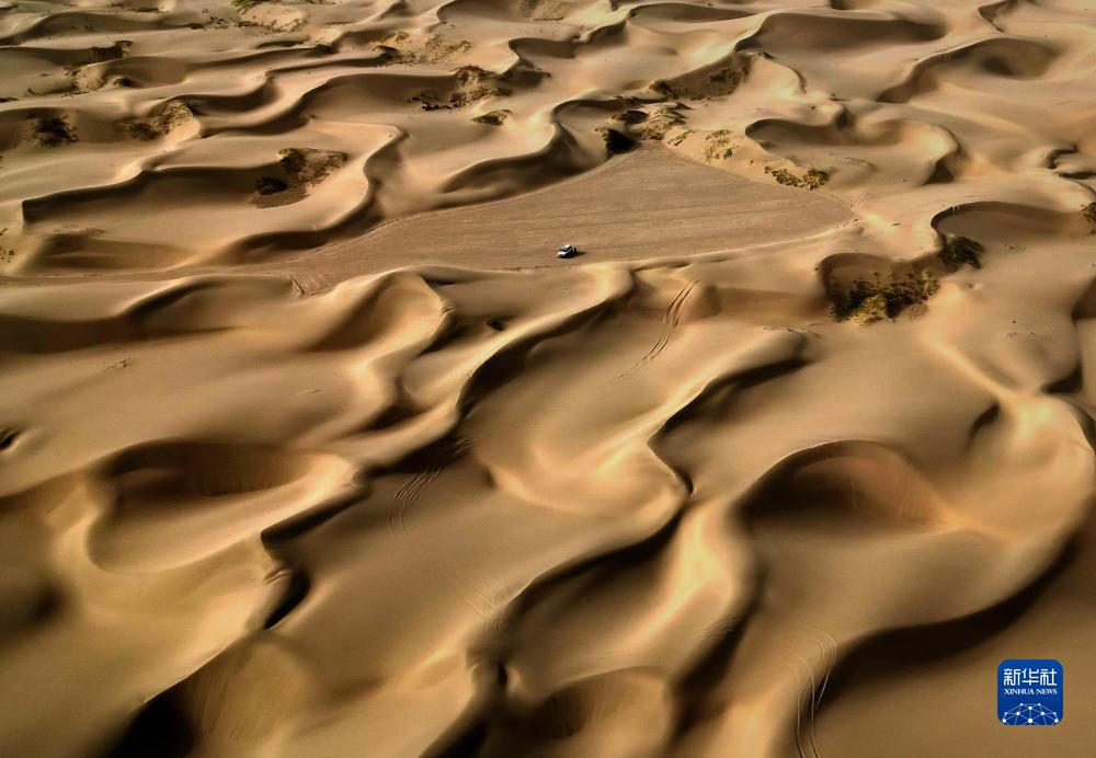 這是9月7日在新疆喀什地區麥蓋提縣N39°沙漠旅游景區拍攝的沙漠風光(無人機照片)。
