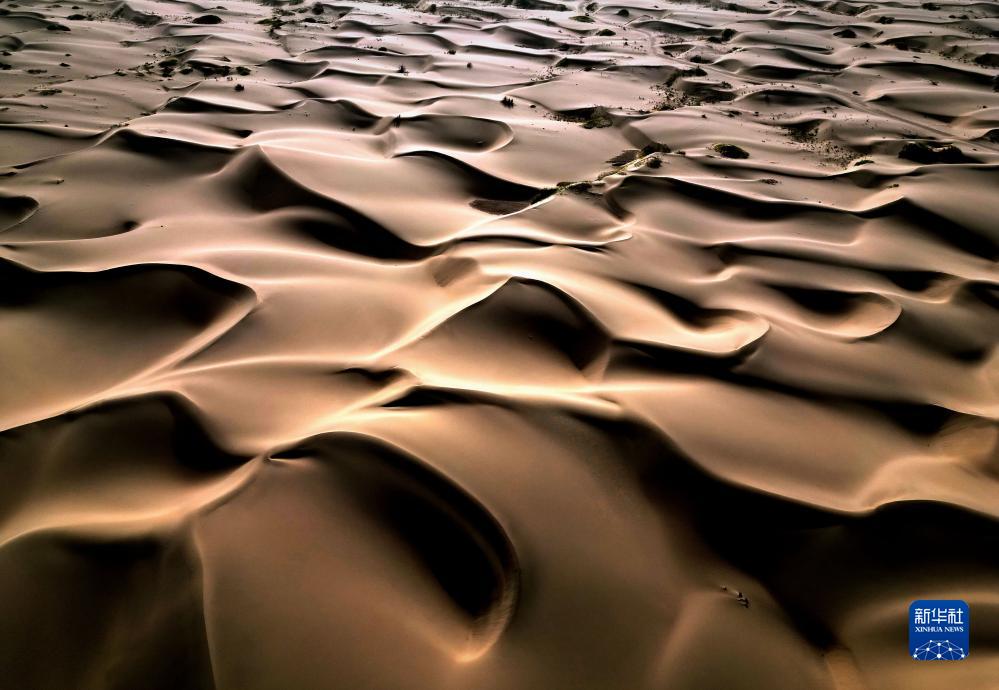 這是9月7日在新疆喀什地區麥蓋提縣N39°沙漠旅游景區拍攝的沙漠風光(無人機照片)。
