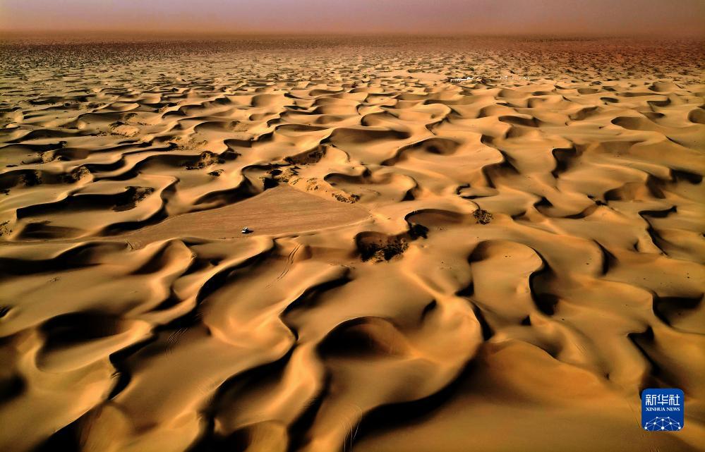 這是9月7日在新疆喀什地區麥蓋提縣N39°沙漠旅游景區拍攝的沙漠風光(無人機照片)。