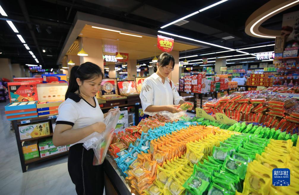 9月9日,消費(fèi)者在貴州省從江縣一家超市選購食品。