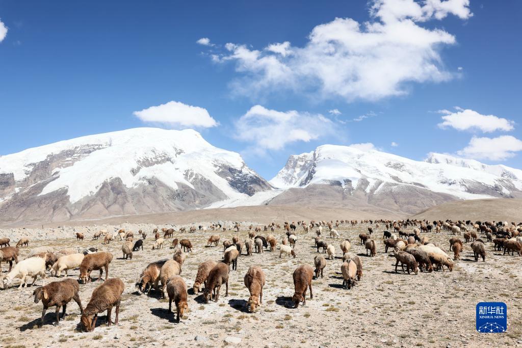 在“冰川之父”慕士塔格峰腳下,新疆塔什庫爾干塔吉克自治縣塔合曼鄉(xiāng)境內(nèi)的一片天然草場(chǎng)吸引周邊鄉(xiāng)村的牧羊人在此放牧。進(jìn)入秋季以來,草場(chǎng)漸漸泛黃,屹立于遠(yuǎn)處的慕士塔格峰和公格爾九別峰在藍(lán)天白云的映襯下格外壯美,一幅寧靜悠遠(yuǎn)的牧羊圖引人入勝。