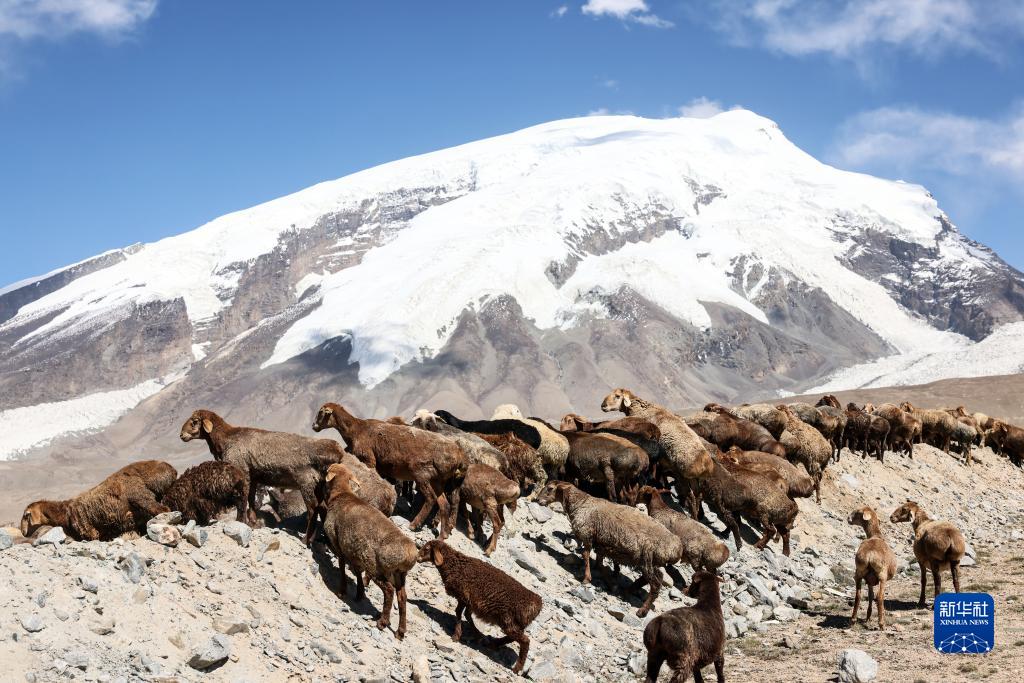 在“冰川之父”慕士塔格峰腳下,新疆塔什庫爾干塔吉克自治縣塔合曼鄉境內的一片天然草場吸引周邊鄉村的牧羊人在此放牧。進入秋季以來,草場漸漸泛黃,屹立于遠處的慕士塔格峰和公格爾九別峰在藍天白云的映襯下格外壯美,一幅寧靜悠遠的牧羊圖引人入勝。