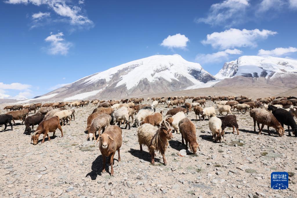在“冰川之父”慕士塔格峰腳下,新疆塔什庫爾干塔吉克自治縣塔合曼鄉境內的一片天然草場吸引周邊鄉村的牧羊人在此放牧。進入秋季以來,草場漸漸泛黃,屹立于遠處的慕士塔格峰和公格爾九別峰在藍天白云的映襯下格外壯美,一幅寧靜悠遠的牧羊圖引人入勝。