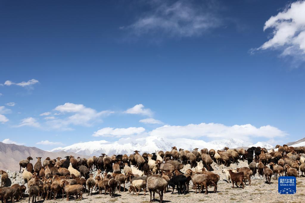 在“冰川之父”慕士塔格峰腳下,新疆塔什庫爾干塔吉克自治縣塔合曼鄉境內的一片天然草場吸引周邊鄉村的牧羊人在此放牧。進入秋季以來,草場漸漸泛黃,屹立于遠處的慕士塔格峰和公格爾九別峰在藍天白云的映襯下格外壯美,一幅寧靜悠遠的牧羊圖引人入勝。