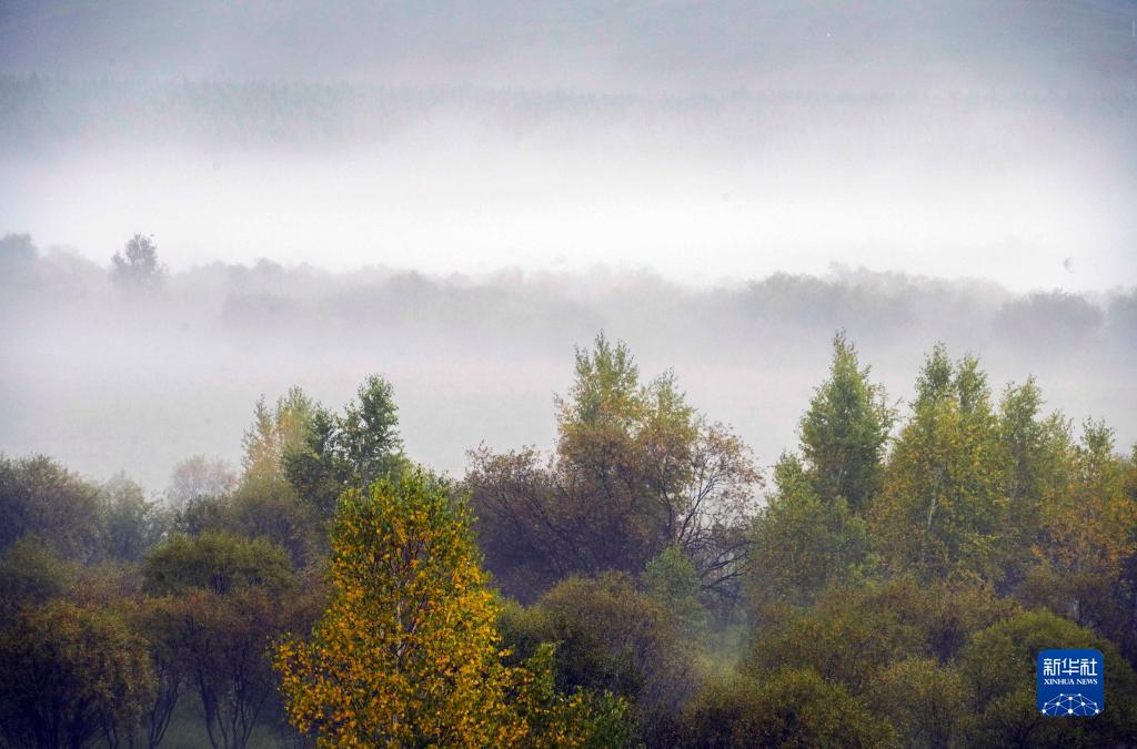 當日,位于河北省承德市的賽罕壩國家森林公園霧氣繚繞,秋景迷人。