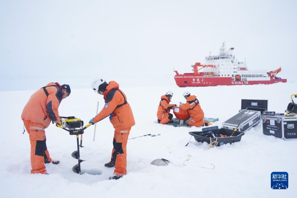 這是在北極點附近的冰站調查作業現場(9月5日攝)。
