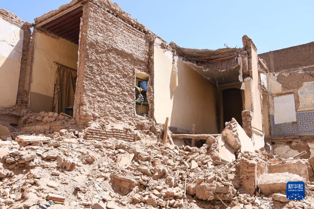 這是9月9日在摩洛哥南部城市馬拉喀什拍攝的受損建筑。