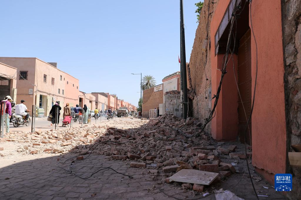 這是9月9日在摩洛哥南部城市馬拉喀什拍攝的震后景象。