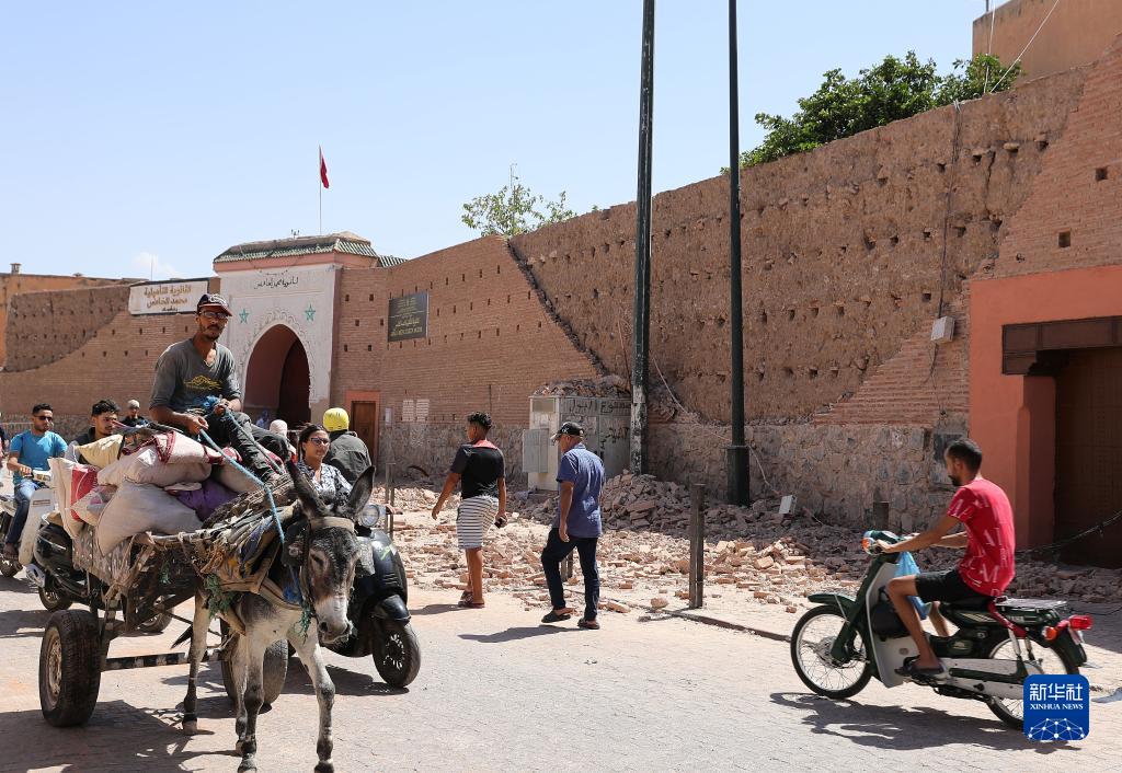 這是9月9日在摩洛哥南部城市馬拉喀什拍攝的震后景象。