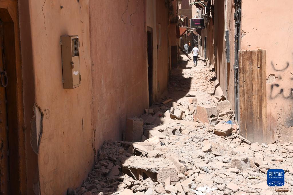 這是9月9日在摩洛哥南部城市馬拉喀什拍攝的震后景象。