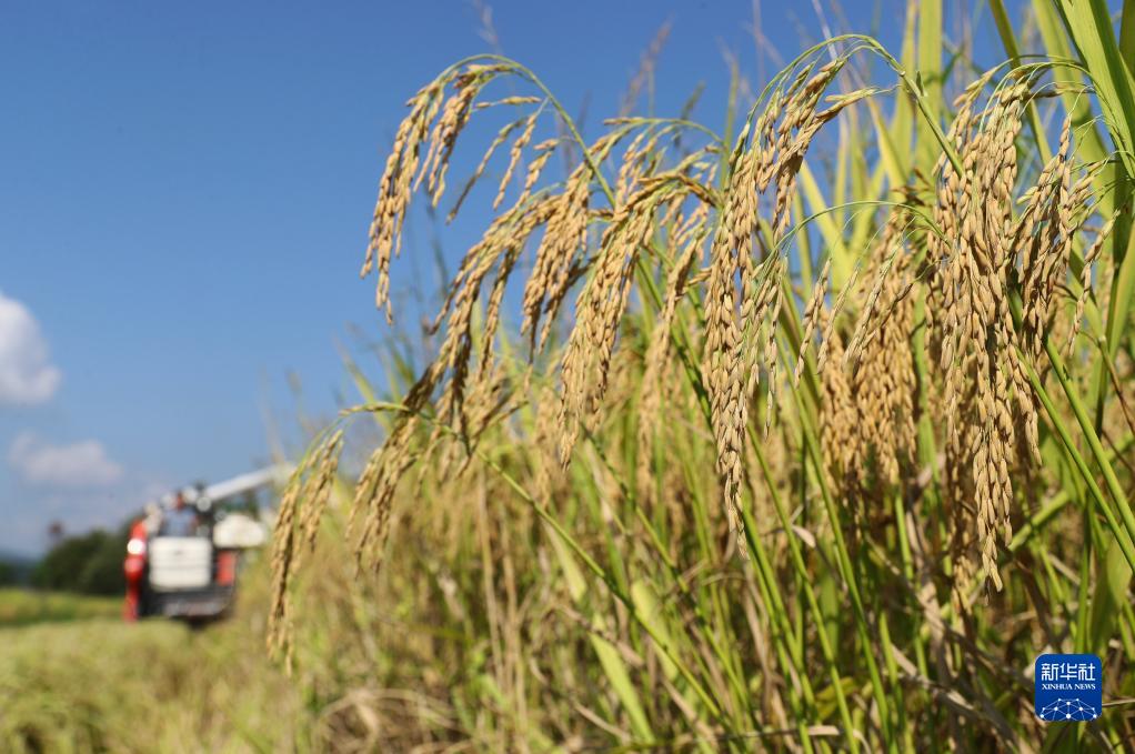 9月9日,在湖南省衡陽市衡東縣楊林鎮,當地村民駕駛農機收割水稻。