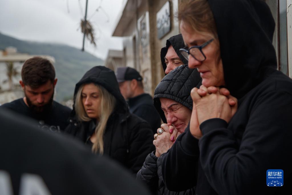 9月9日,在巴西南里奧格蘭德州穆孫市的一處陵園,人們?yōu)橛鲭y者哀悼。