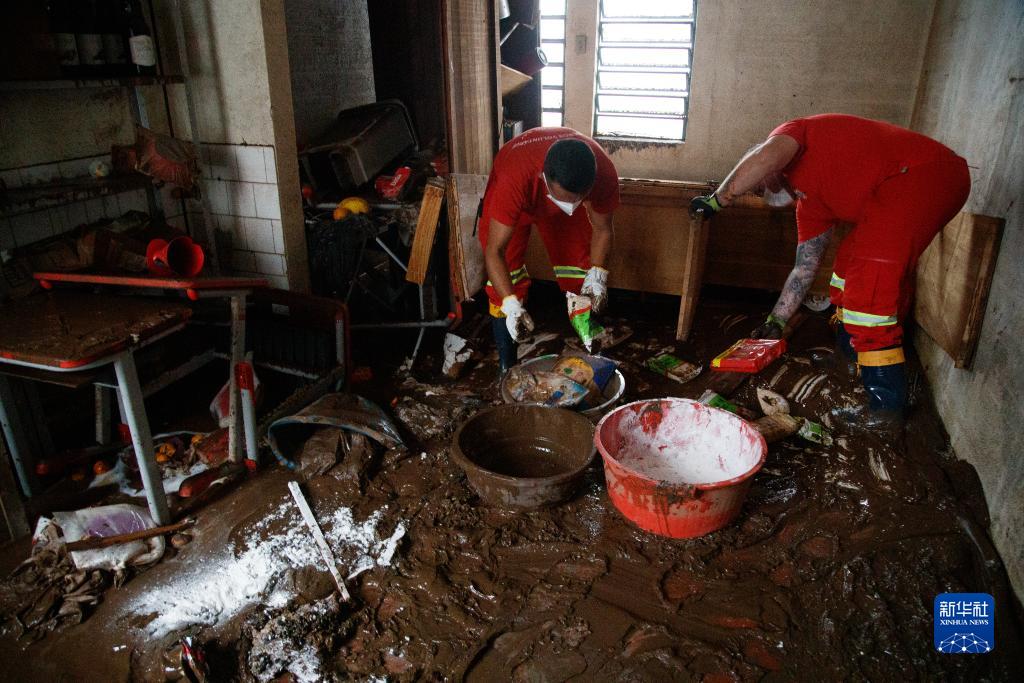 9月9日,救援人員在巴西南里奧格蘭德州穆孫市清理一所學校。