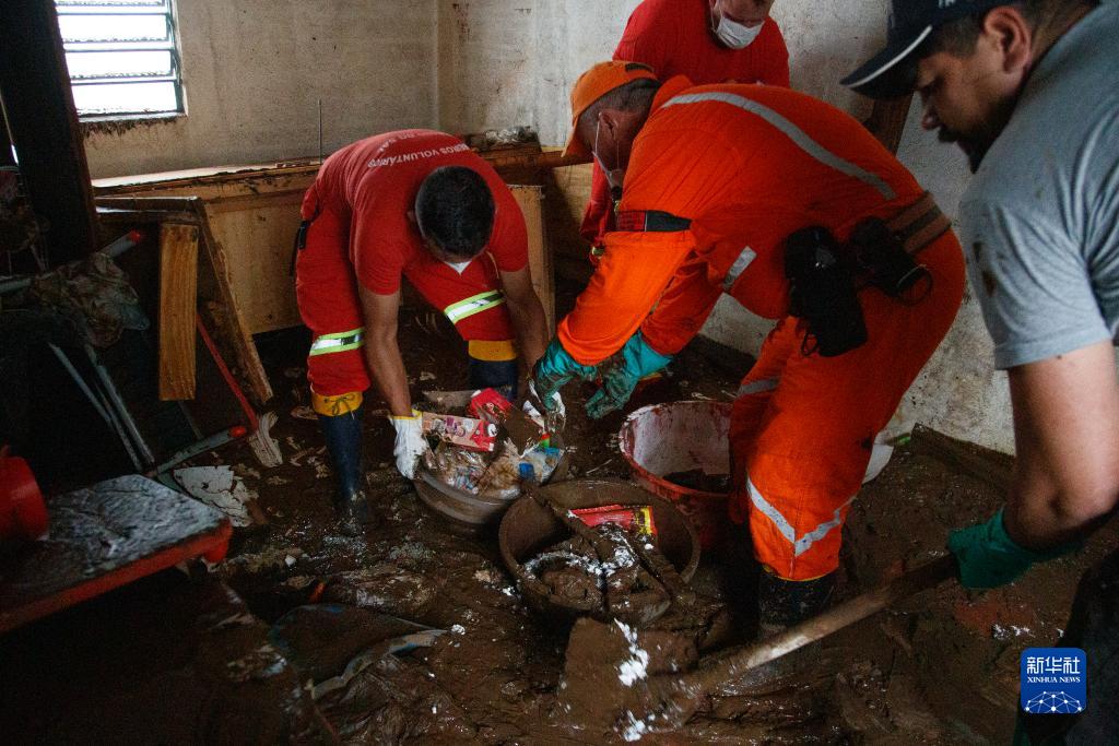 9月9日,救援人員在巴西南里奧格蘭德州穆孫市清理一所學校。