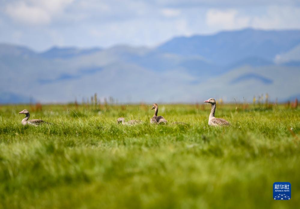 這是8月22日在四川省阿壩藏族羌族自治州若爾蓋縣花湖拍攝的灰雁。